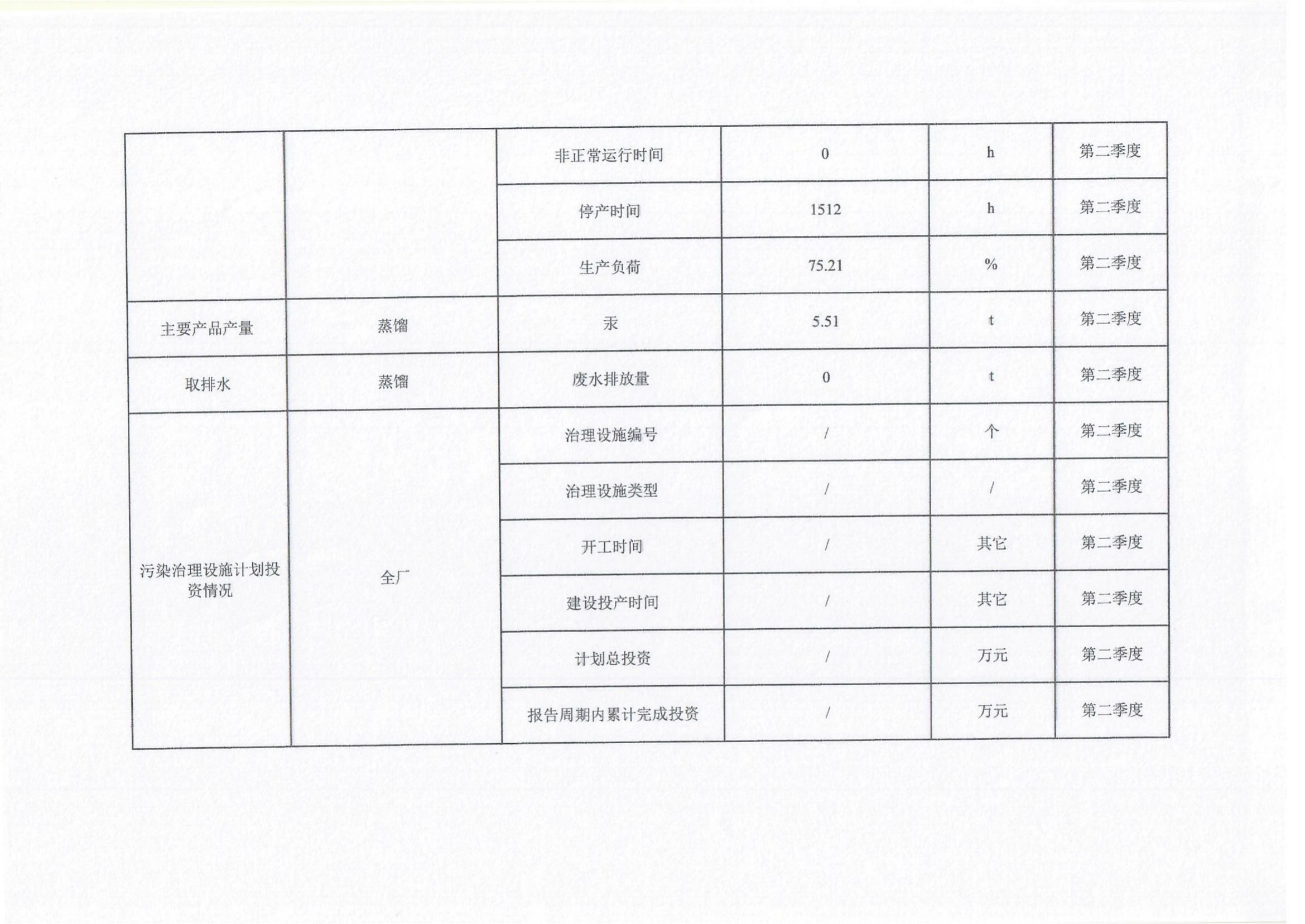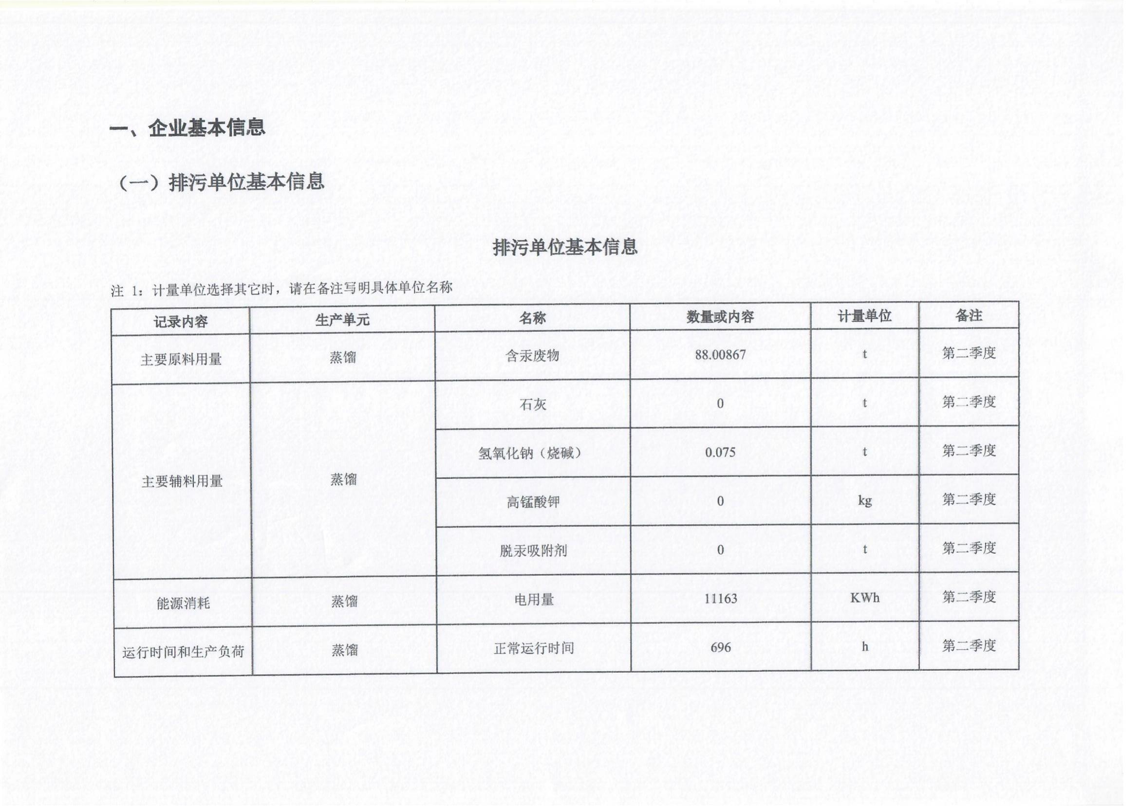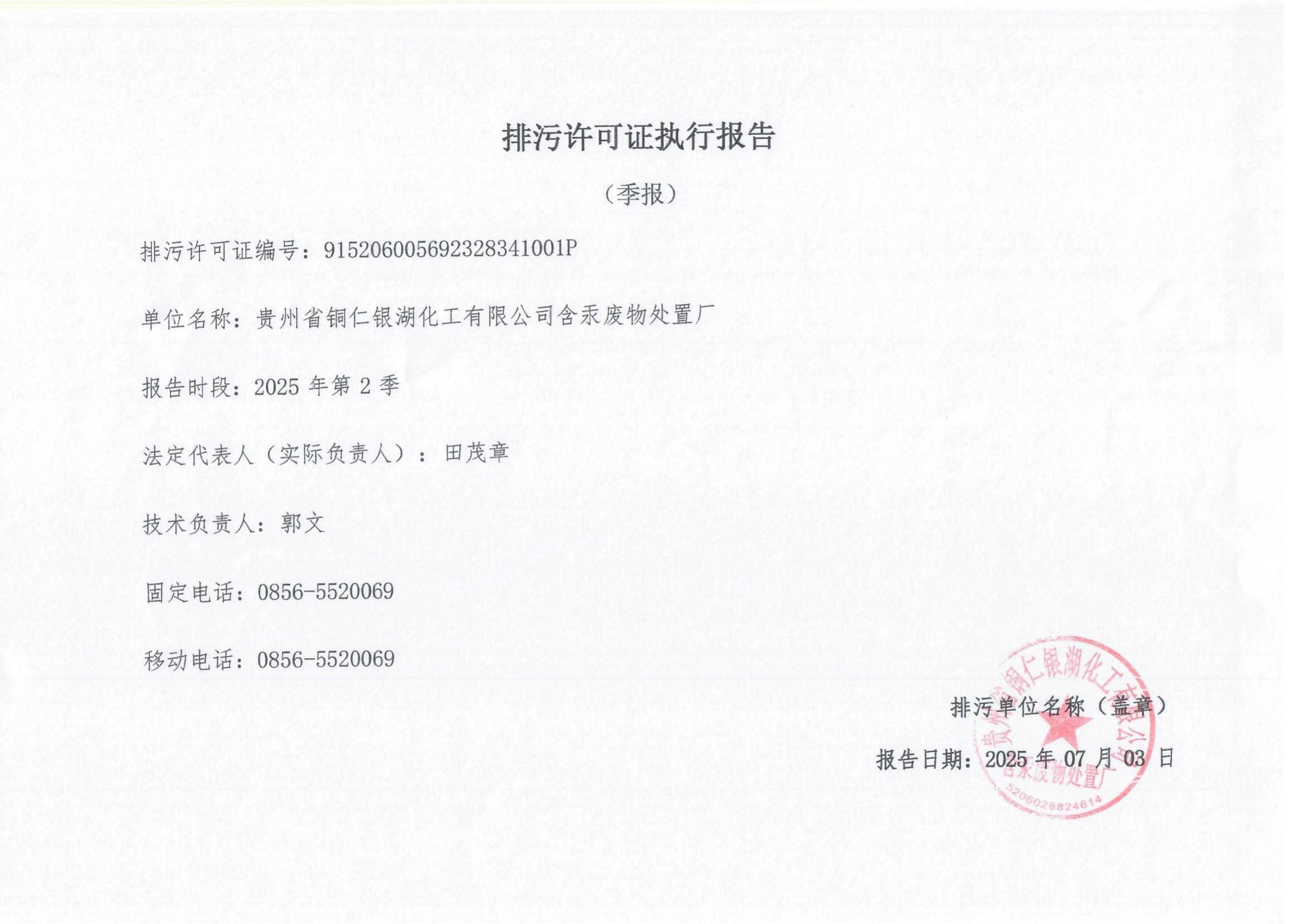 2025年貴州省銅仁銀湖化工有限公司含汞廢物處置廠第二季度排污許可執(zhí)行報告